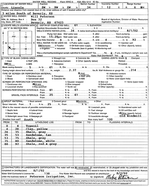 Peterson, Will | 61 ft. | 34 ft. | 17.5 gpm. | Domestic | Constructed | 01-Aug-2002 | Scan | |