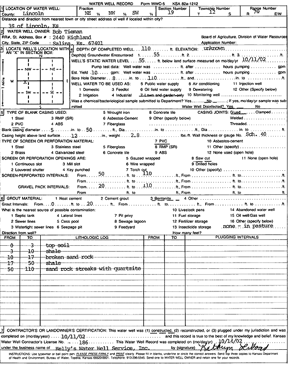 Tieman, Bob | 110 ft. | 55 ft. | 10 gpm. | Domestic, Lawn and Garden | Constructed | 11-Oct-2002 | Scan | |