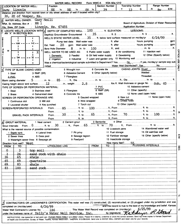 Moili, Gary | 100 ft. | 35 ft. | 20 gpm. | Domestic | Constructed | 24-Jun-1999 | Scan | |