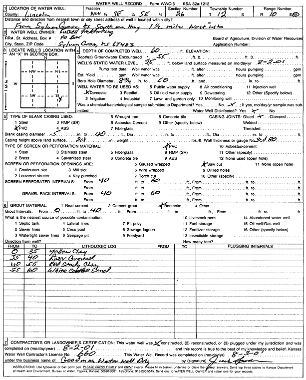 Hlad, Dale | 70 ft. | 26 ft. | 20 gpm. | Domestic | Constructed | 15-Apr-1982 | ||