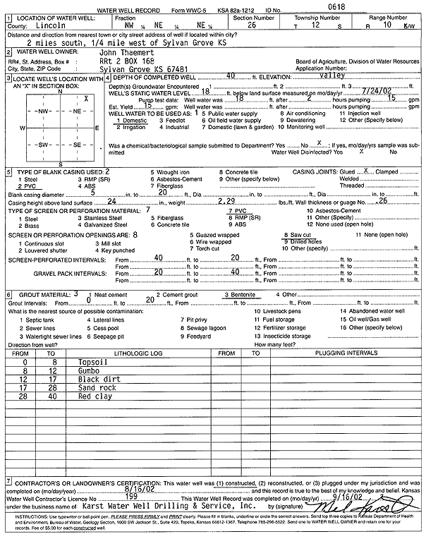 Thaemert, John | 40 ft. | 18 ft. | 15 gpm. | Domestic | Constructed | 16-Aug-2002 | Scan | |