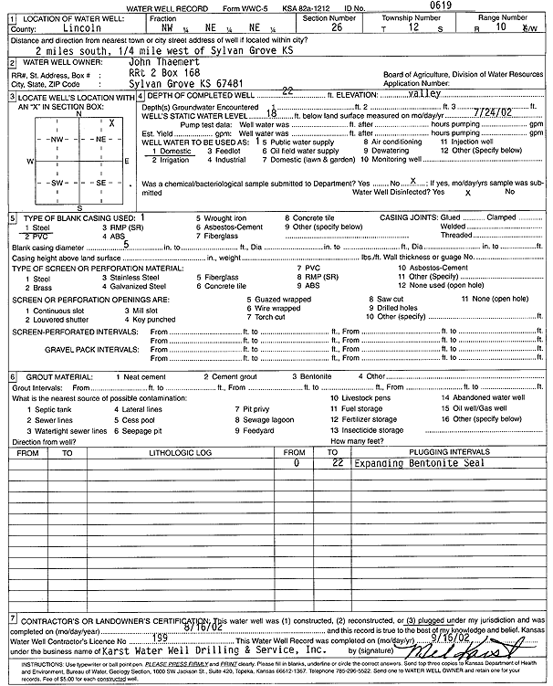Thaemert, John | 22 ft. | 18 ft. | Domestic | Plugged | 16-Aug-2002 | Scan | ||