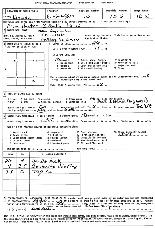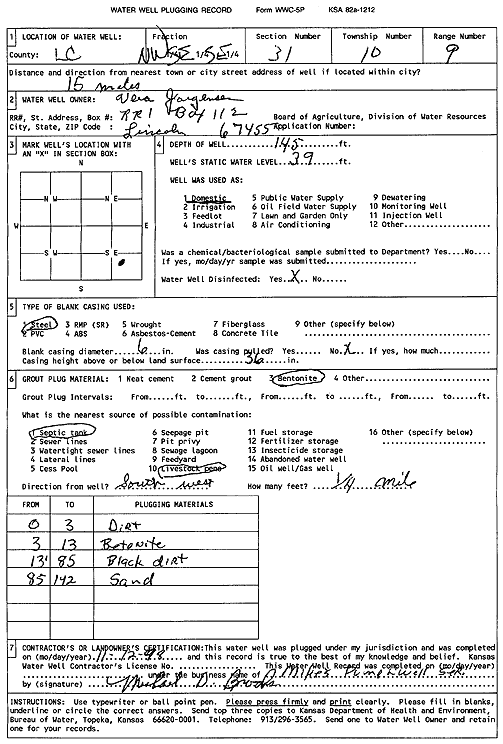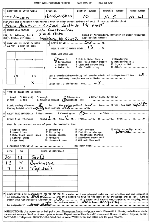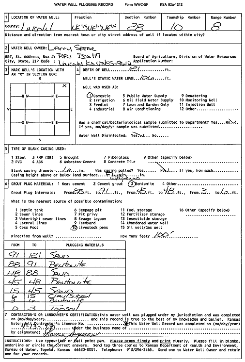 Spear, Larry | 121 ft. | 106 ft. | Domestic | Plugged | 13-Apr-1999 | Scan | ||