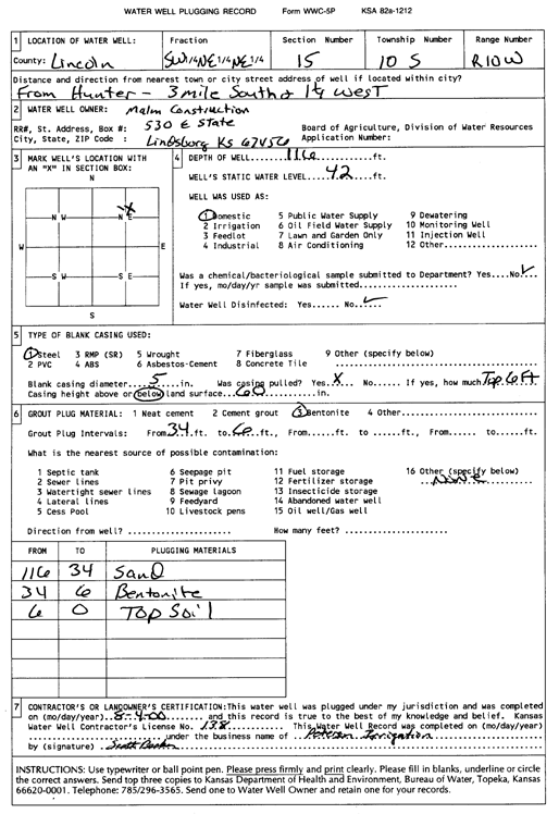 Malm Construction | 116 ft. | 42 ft. | Domestic | Plugged | 04-Aug-2000 | Scan | ||