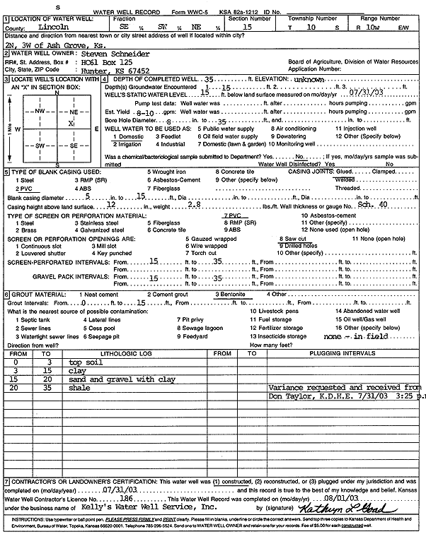 Schneider, Steven | 35 ft. | 15 ft. | 9 gpm. | Domestic | Constructed | 31-Jul-2003 | Scan | |