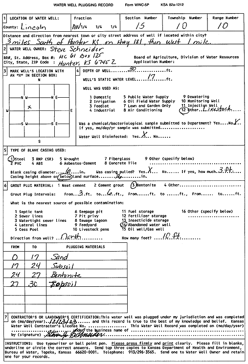 Schneider, Steve | 30 ft. | 17 ft. | Domestic, Livestock | Plugged | 23-Dec-2003 | Scan | ||