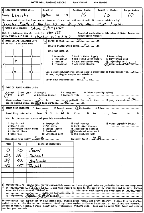 Schneider, Steve | 45 ft. | 25 ft. | Domestic, Livestock | Plugged | 23-Dec-2003 | Scan | ||
