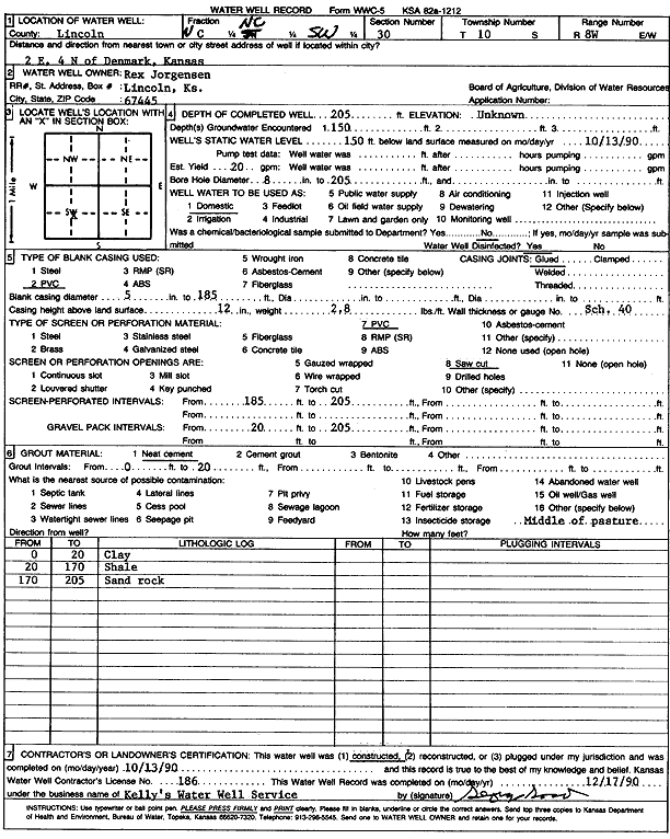 Jorgensen, Rex | 205 ft. | 150 ft. | 20 gpm. | Domestic | Constructed | 13-Oct-1990 | Scan | |