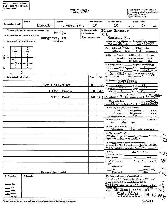 Brummer, Edgar | 185 ft. | 80 ft. | 25 gpm. | Domestic | Constructed | 30-Nov-1977 | Scan | |