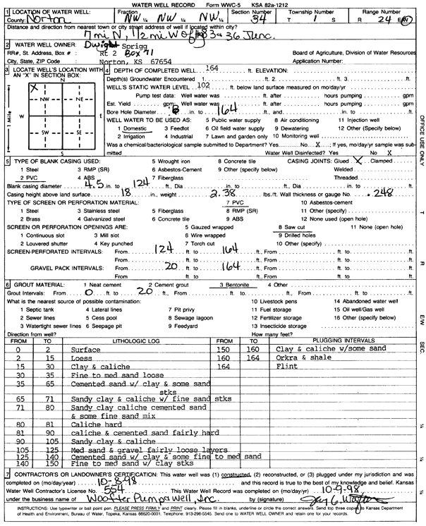 Kasson, Matt (was Murfin Drilling Co.) | 48 ft. | 25 ft. | 30 gpm. | Domestic, changed from Oil Field Water Supply | Kasson Trust 1-1 | Constructed | 02-Apr-2013 |