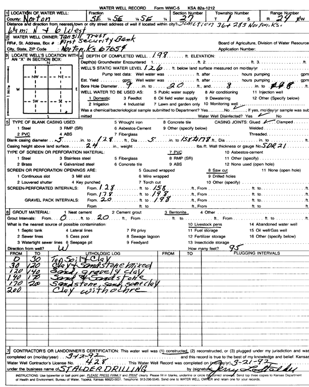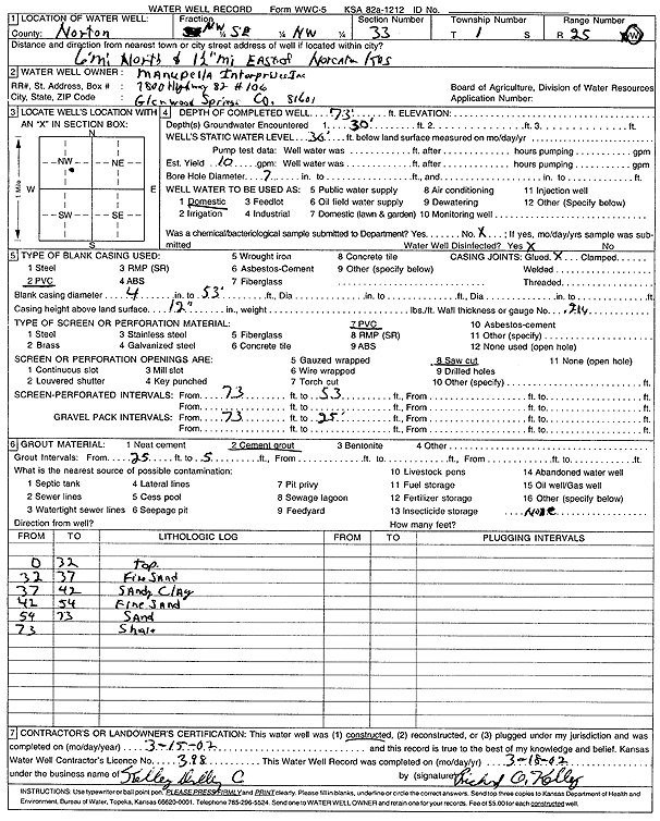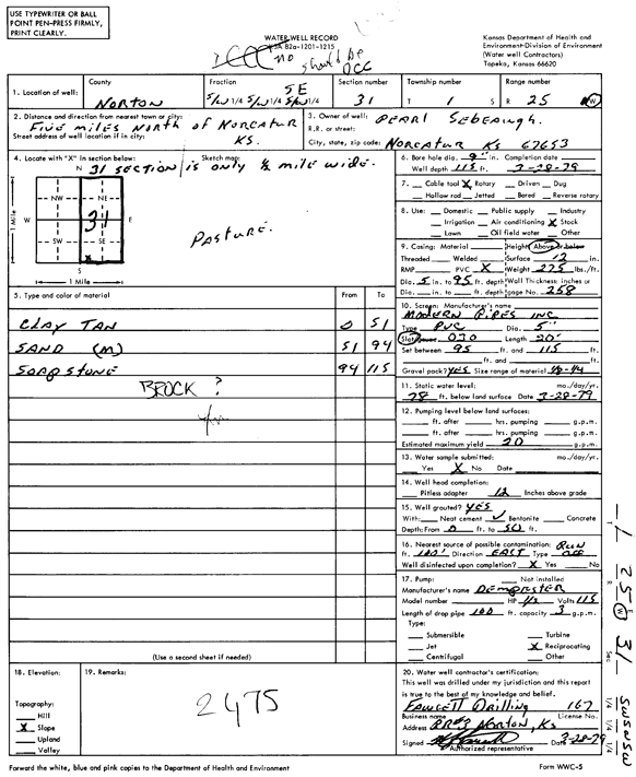 Sebeaugh, Pearl | 115 ft. | 78 ft. | 20 gpm. | Domestic, Livestock | Constructed | 28-Mar-1979 | Scan | |