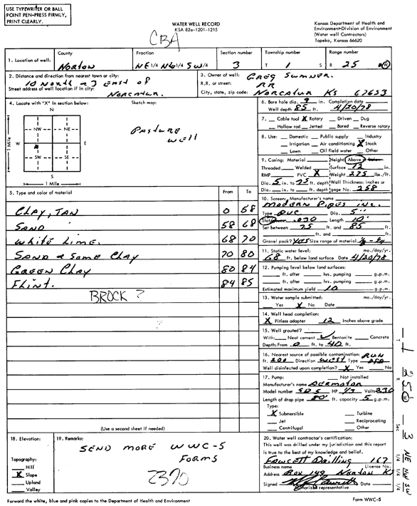 Sumner, Greg | 85 ft. | 68 ft. | 10 gpm. | Domestic, Livestock | Constructed | 20-Apr-1978 | Scan | |