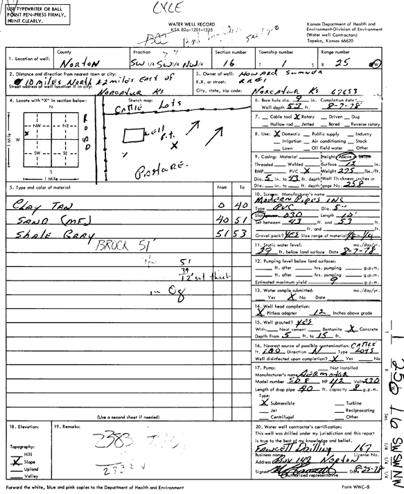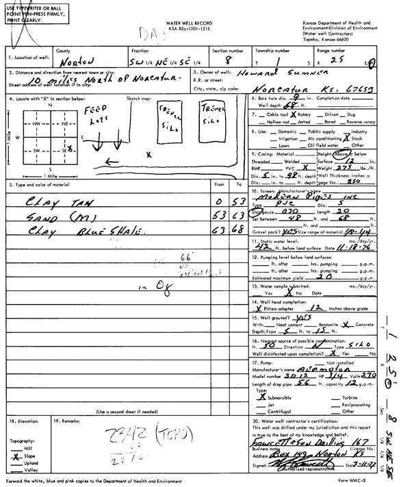 Sumner, Howard | 68 ft. | 42 ft. | 20 gpm. | Domestic, Livestock | Constructed | 01-Mar-1977 | Scan | |