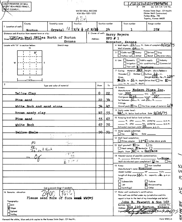 Meyers, Harry | 71 ft. | 44 ft. | 20 gpm. | Domestic, Livestock | Constructed | 25-Sep-1975 | Scan | |