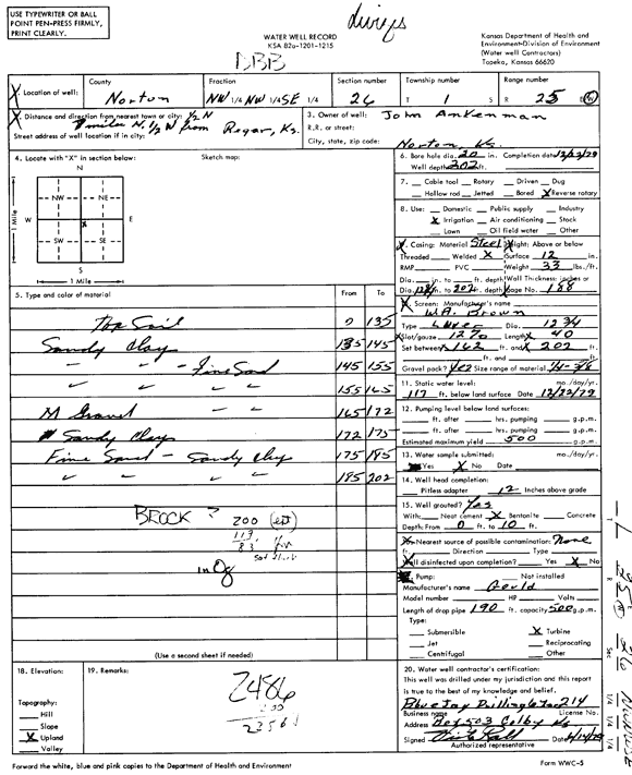 Ankenman, John | 109 ft. | 44.7 ft. | 25 gpm. | Domestic, Livestock | Constructed | 28-May-2019 |