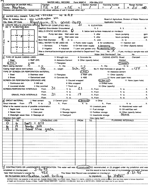 Levine-Fricke | 31 ft. | Monitoring well/observation/piezometer | Constructed | 16-Mar-1995 | Scan | |||