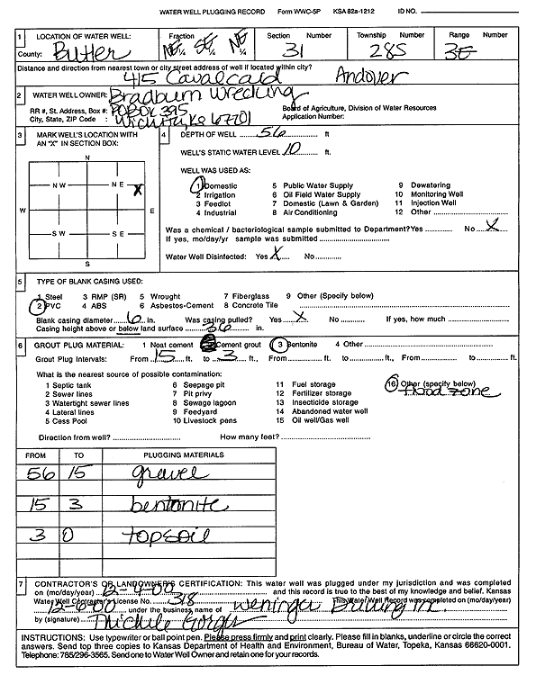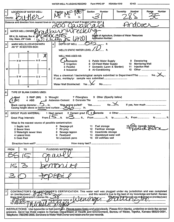 Bradburn Wrecking | 56 ft. | 10 ft. | Domestic | Plugged | 04-Dec-2000 | Scan | ||