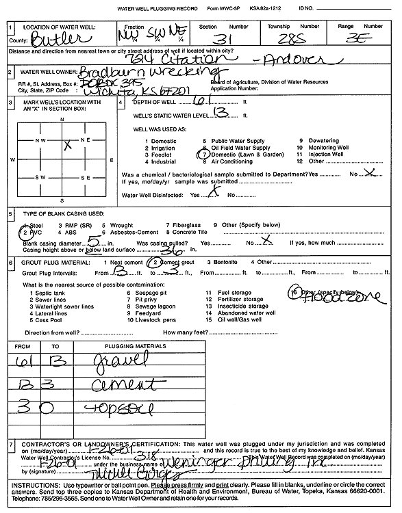 Bradburn Wrecking | 61 ft. | 13 ft. | Domestic, Lawn and Garden | Plugged | 26-Jan-2001 | Scan | ||