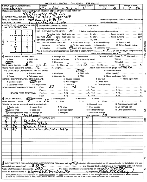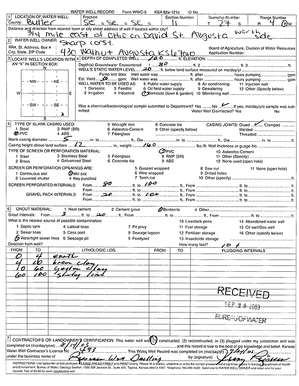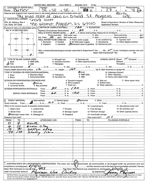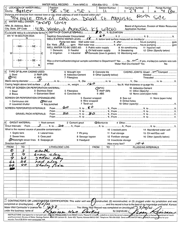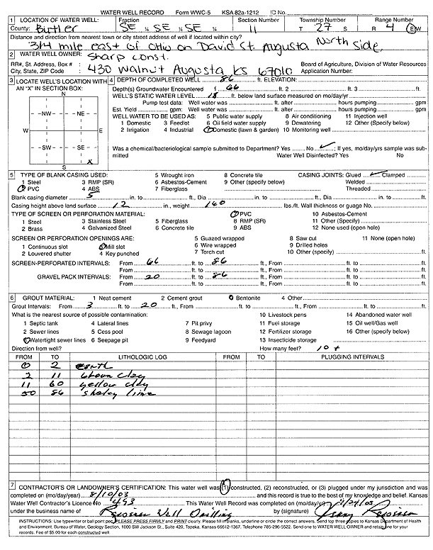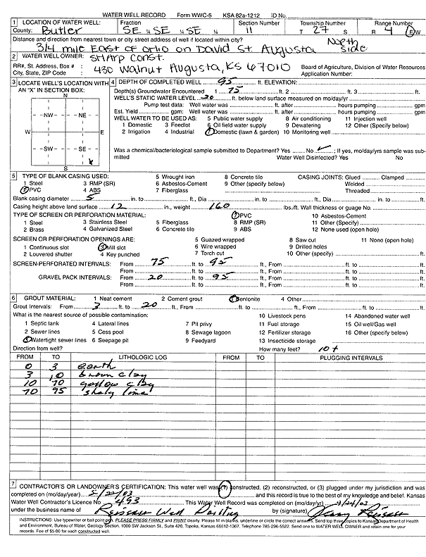 Sharp Construction | 82 ft. | 20 ft. | 28 gpm. | Domestic, Lawn and Garden | Constructed | 02-Aug-2003 | Scan | |