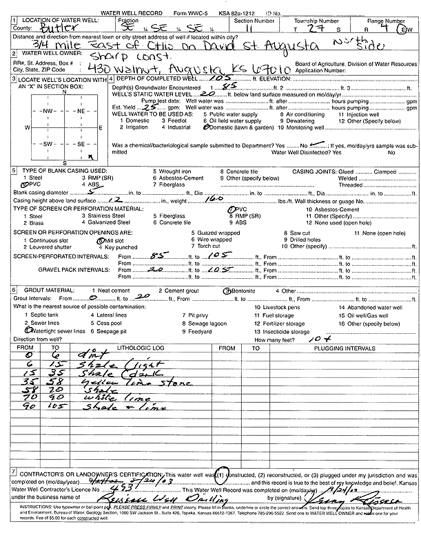 Sharp Construction | 105 ft. | 20 ft. | 25 gpm. | Domestic, Lawn and Garden | Constructed | 26-Aug-2003 | Scan | |
