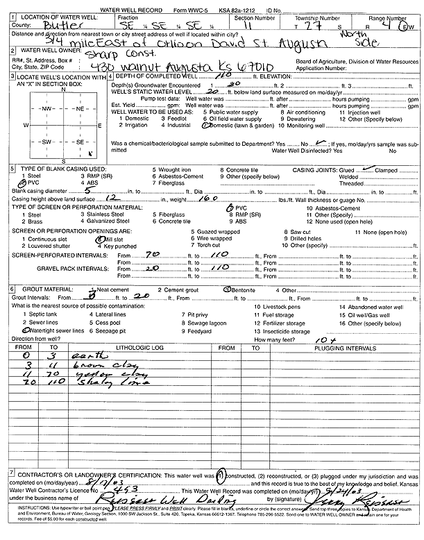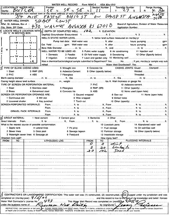 Sharp Construction | 102 ft. | (unstated)/abandoned | Plugged | 05-Sep-2003 | Scan | |||