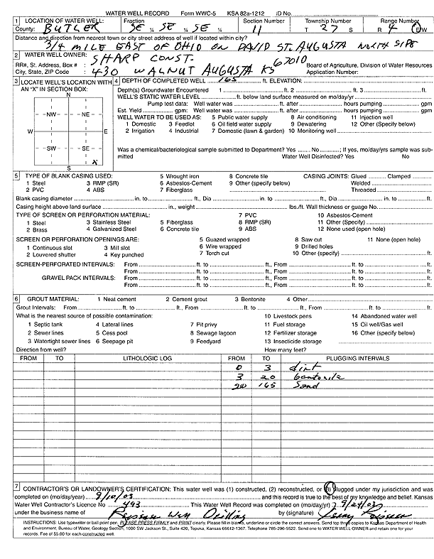 Sharp Construction | 165 ft. | (unstated)/abandoned | Plugged | 10-Sep-2003 | Scan | |||