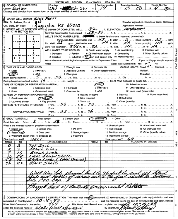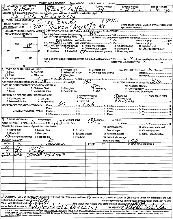 City of Augusta | 33 ft. | 10 ft. | Domestic | Plugged | 19-Nov-1997 | Scan | ||