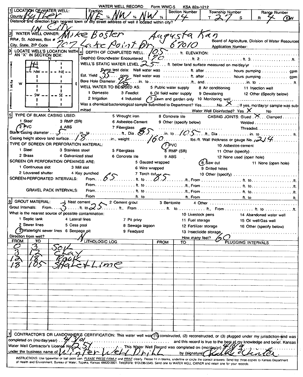 Boster, Mike | 105 ft. | 25 ft. | 35 gpm. | Domestic, Lawn and Garden | Constructed | 03-Apr-2001 | Scan | |