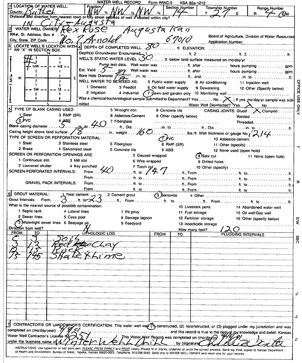 Rose, Rex | 80 ft. | 30 ft. | 5 gpm. | Domestic, Lawn and Garden | Constructed | 08-Apr-2001 | Scan | |