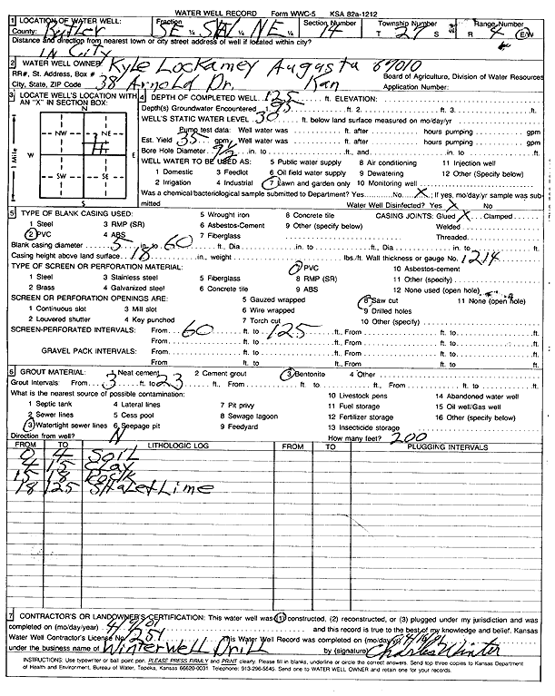 Lockamey, Kyle | 125 ft. | 30 ft. | 35 gpm. | Domestic, Lawn and Garden | Constructed | 09-Apr-2001 | Scan | |