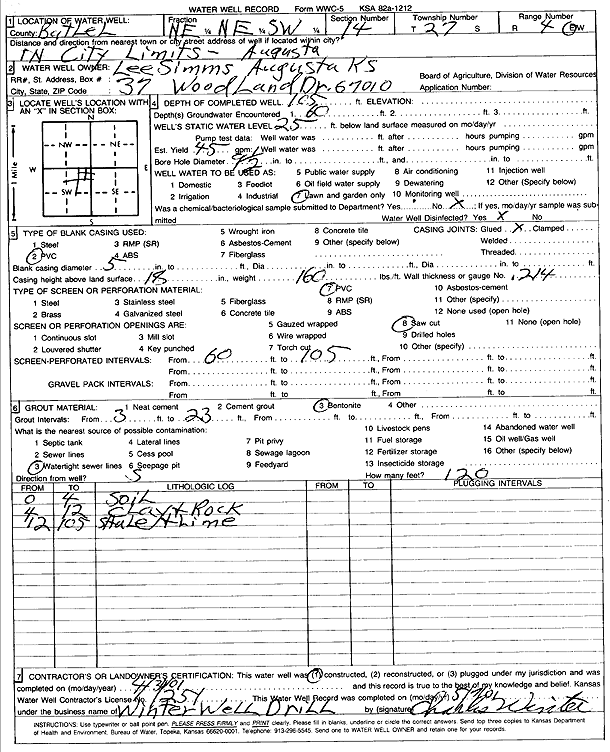 Simms, Lee | 105 ft. | 25 ft. | 45 gpm. | Domestic, Lawn and Garden | Constructed | 30-Apr-2001 | Scan | |