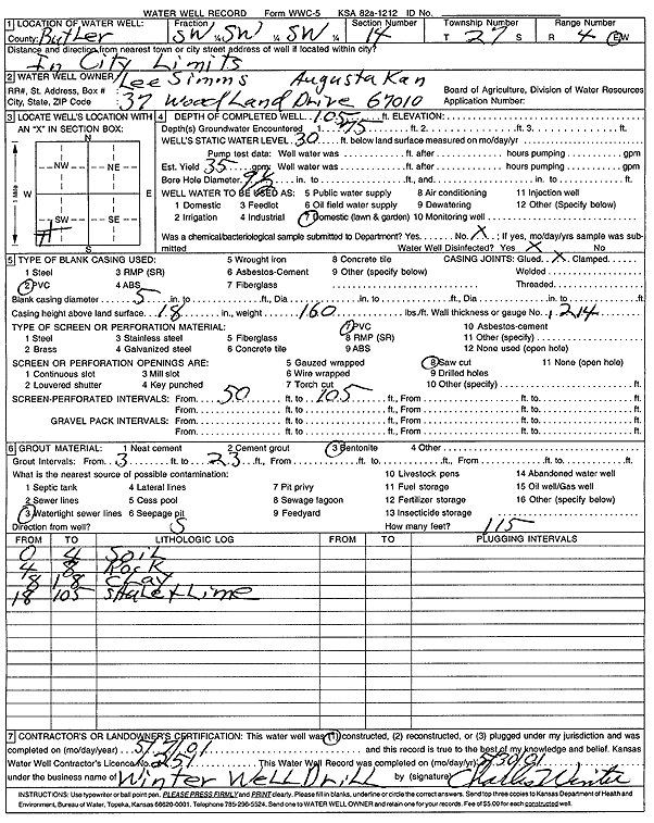 Simms, Lee | 105 ft. | 30 ft. | 35 gpm. | Domestic, Lawn and Garden | Constructed | 07-May-2001 | Scan | |