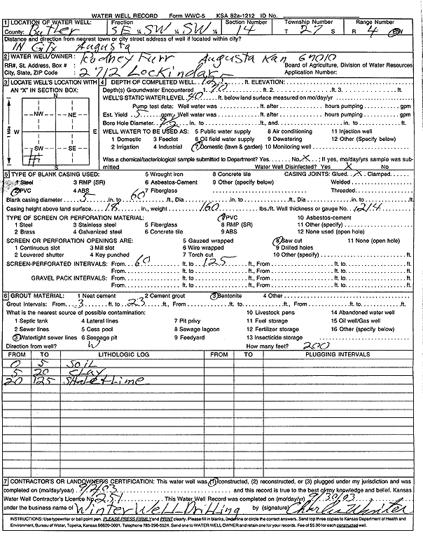 Furr, Rodney | 125 ft. | 40 ft. | 5 gpm. | Domestic, Lawn and Garden | Constructed | 02-Sep-2003 | Scan | |