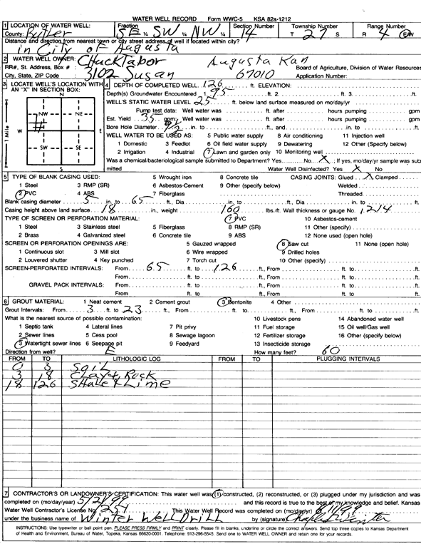 Tabor, Chuck | 126 ft. | 25 ft. | 35 gpm. | Domestic, Lawn and Garden | Constructed | 21-May-1999 | Scan | |