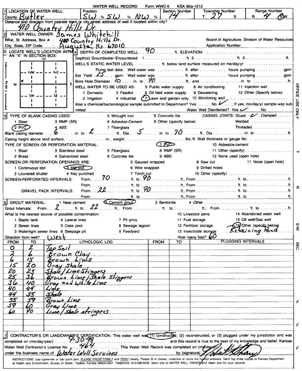 Whitehill, James | 90 ft. | 25 gpm. | Domestic, Lawn and Garden | Constructed | 30-Sep-1998 | Scan | ||