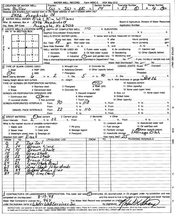 Williams, Rick and Kim | 110 ft. | 25 gpm. | Domestic, Lawn and Garden | Constructed | 17-Aug-1998 | Scan | ||