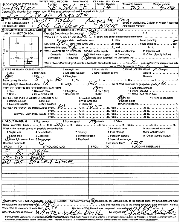 Tolly, Scott | 125 ft. | 30 ft. | 50 gpm. | Domestic, Lawn and Garden | Constructed | 07-Feb-2002 | Scan | |