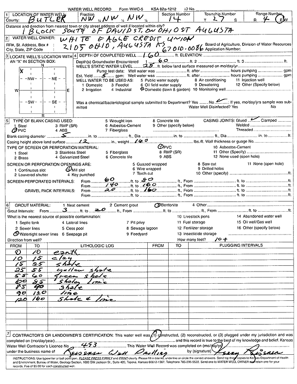 White Eagle Credit Union | 160 ft. | 25 ft. | 5 gpm. | Domestic, Lawn and Garden | Constructed | 01-Aug-2003 | Scan | |