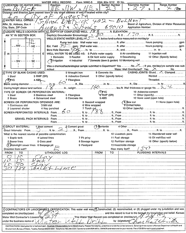 Augusta Township | 127 ft. | 30 ft. | 45 gpm. | Domestic, Lawn and Garden | Constructed | 15-Apr-2006 | ||