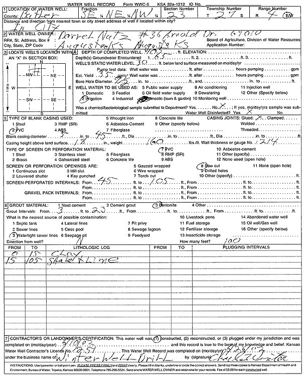 Nutz, Darrel | 105 ft. | 30 ft. | 35 gpm. | Irrigation | Constructed | 10-Jun-2002 | Scan | |