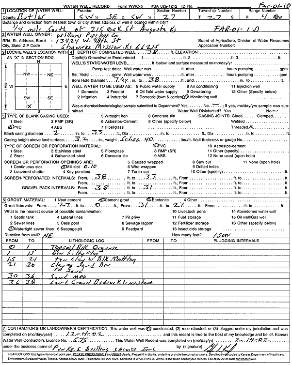 Williams Pipeline Co. | 38 ft. | Monitoring well/observation/piezometer | MW FAR 01-1-D | Constructed | 04-Dec-2002 | Scan | ||