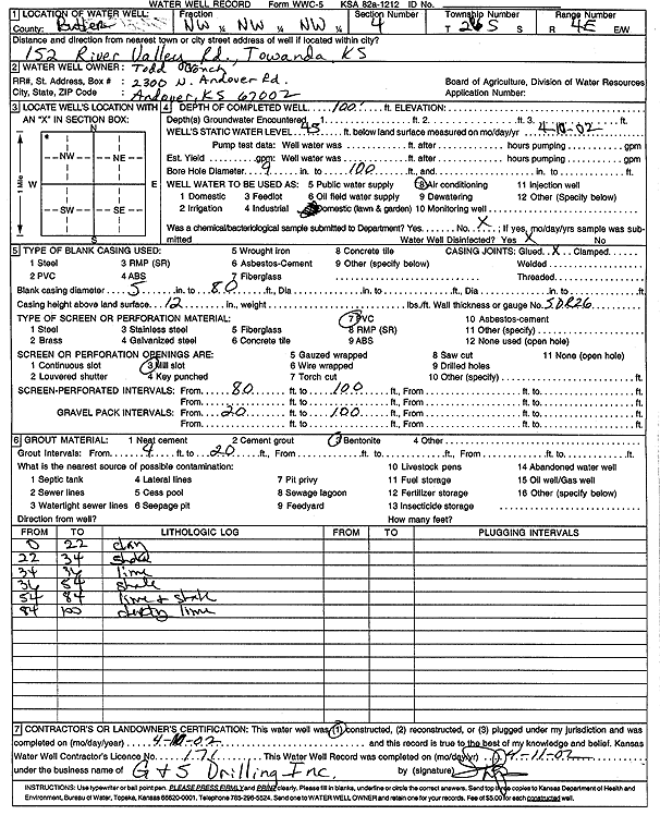 Crouch, Rodney | 110 ft. | 30 ft. | 40 gpm. | Domestic | Constructed | 02-May-1992 | ||