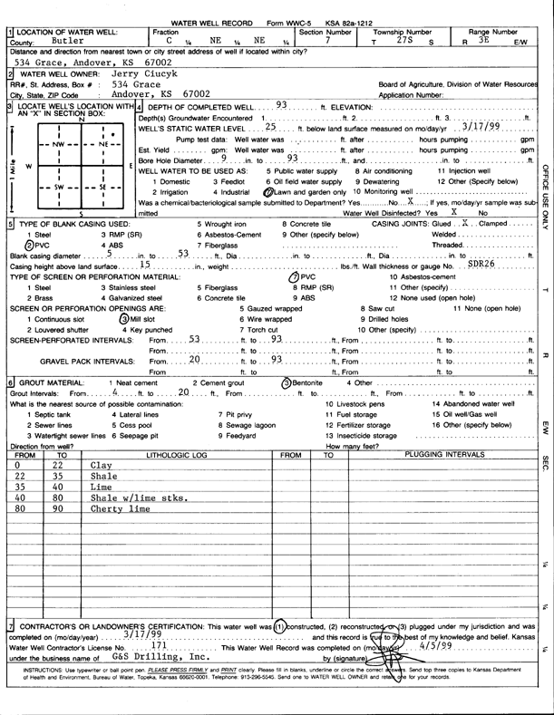 Ciucyk, Jerry | 93 ft. | 25 ft. | Domestic, Lawn and Garden | Constructed | 17-Mar-1999 | Scan | ||