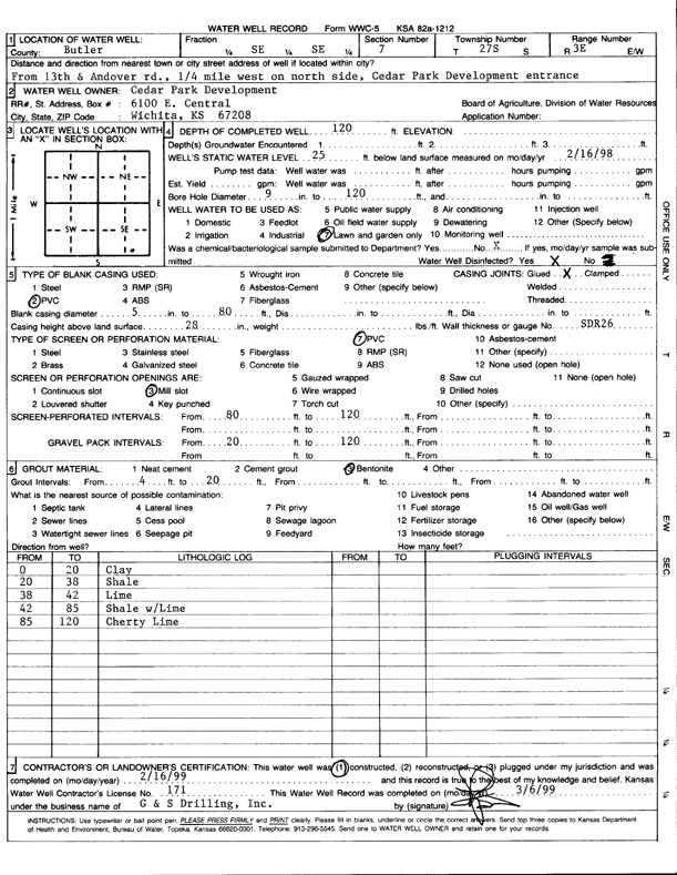 Cedar Park Development | 120 ft. | 25 ft. | Domestic, Lawn and Garden | Constructed | 16-Feb-1999 | Scan | ||