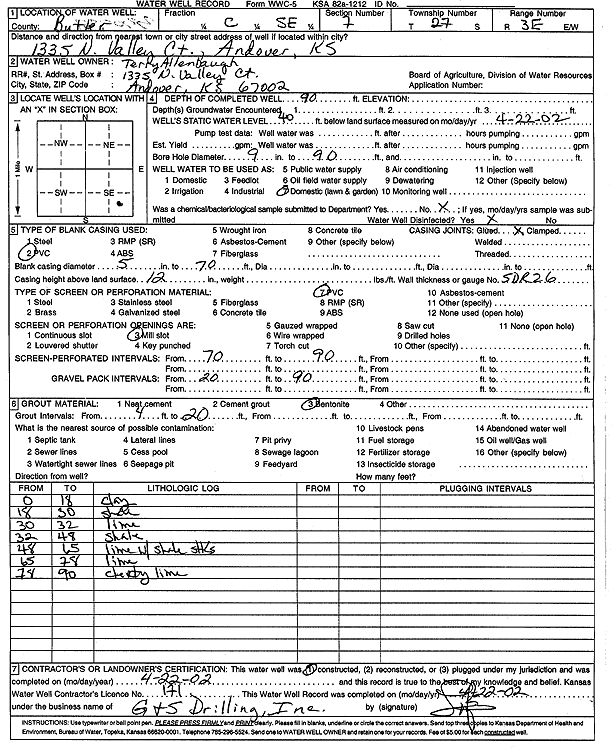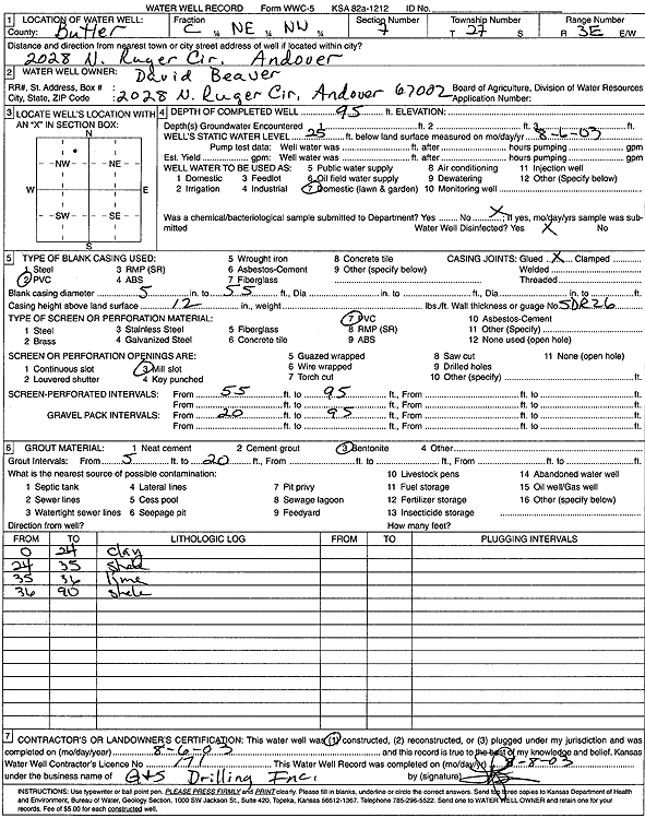 Barkdull, Ryan | 95 ft. | 30 ft. | 25 gpm. | Domestic, Lawn and Garden | Constructed | 05-Nov-2004 | ||