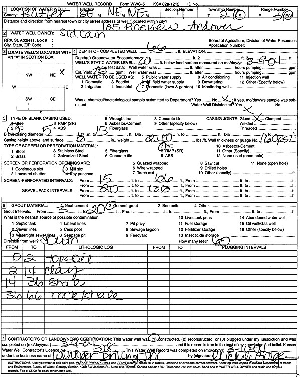 Cain, Sid | 66 ft. | 20 ft. | 25 gpm. | Domestic, Lawn and Garden | Constructed | 09-Mar-2004 | Scan | |