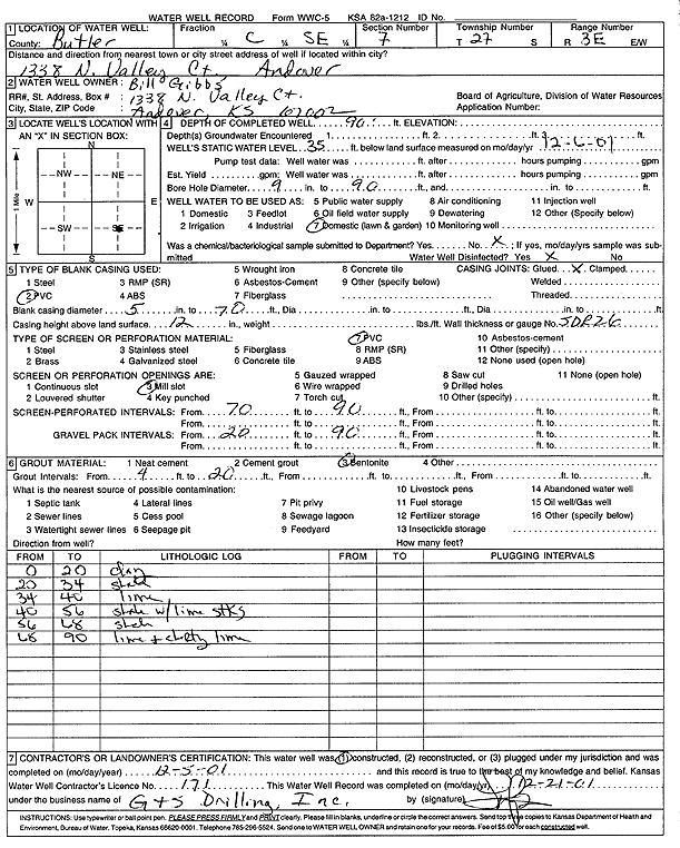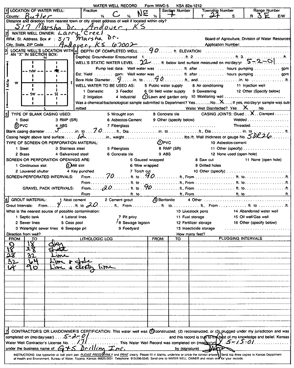 Gray, Mike | 110 ft. | 20 ft. | 15 gpm. | Domestic, Lawn and Garden | Constructed | 20-Jul-2006 | ||