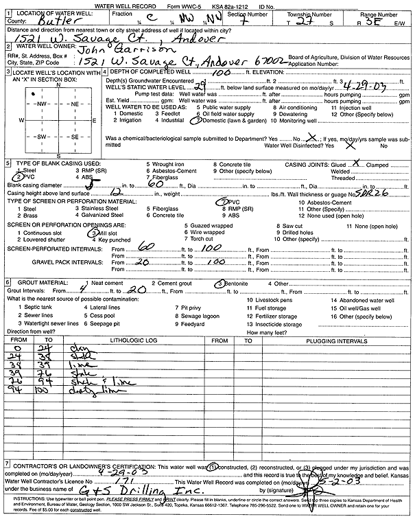 Garrison, John | 100 ft. | 29 ft. | Domestic, Lawn and Garden | Constructed | 29-Apr-2003 | Scan | ||