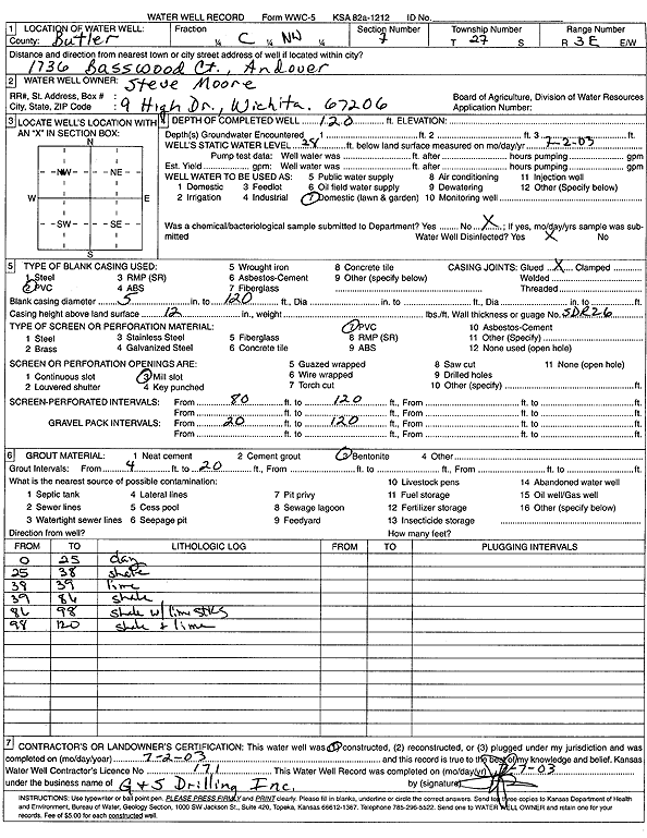 Milligan, Juanita | 100 ft. | 40 ft. | 18 gpm. | Domestic, Lawn and Garden | Constructed | 19-Jun-2014 | ||