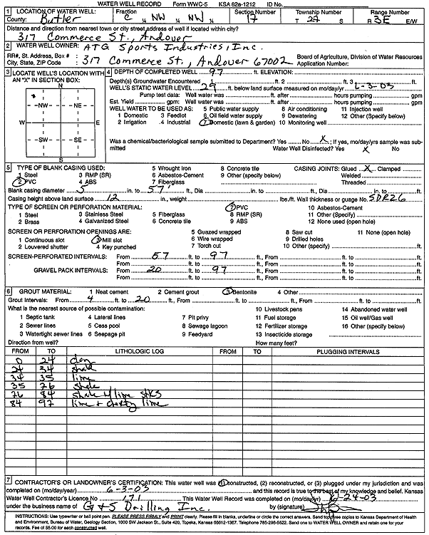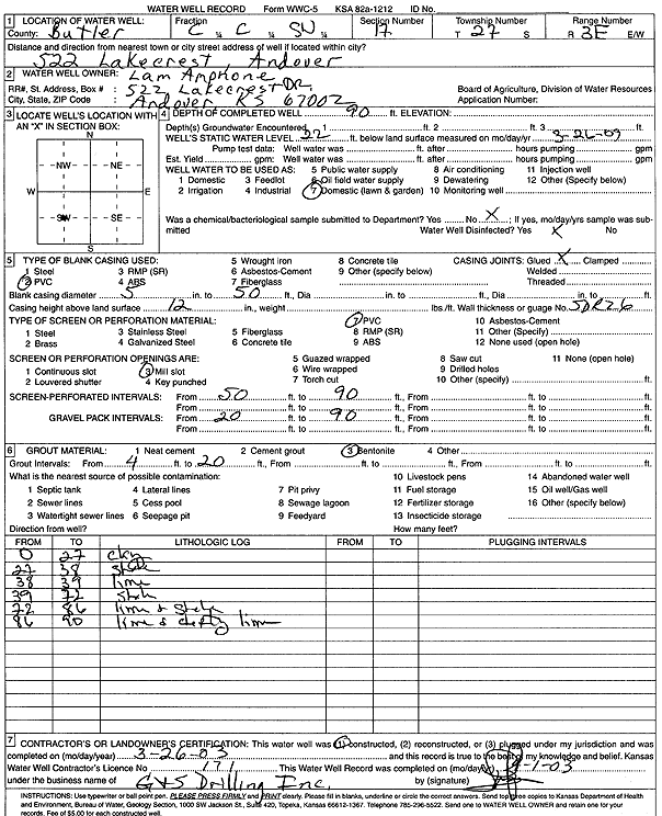 Knebler Construction | 105 ft. | 25 ft. | 25 gpm. | Domestic, Lawn and Garden | Constructed | 15-May-1991 | ||